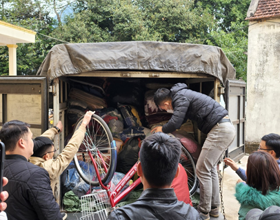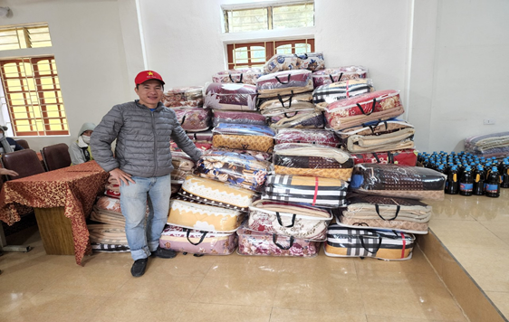 Một số vật dụng cần thiết cho mùa đông như chăn được trao đến tận bà con |